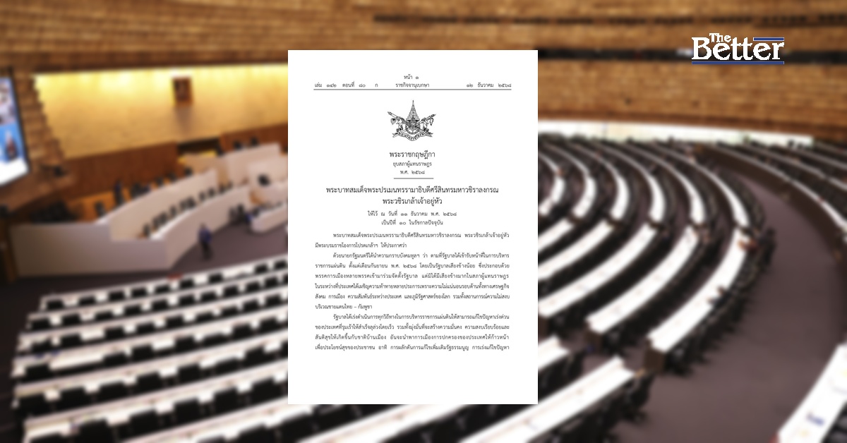 เว็บไซต์ ราชกิจจานุเบกษา เผยแพร่พระราชกฤษฎีกายุบสภา พ.ศ.2568 ระบุว่าพระบาทสมเด็จพระปรเมนทรรามาธิบดีศรีสินทรมหาวชิราลงกรณ พระวชิรเกล้าเจ้าอยู่หัว มีพระบรมราชโองการโปรดเกล้าฯ ให้ประกาศว่าด้วยนายกรัฐมนตรีได้นำความกราบบังคมทูลฯ สมควรยุบสภาผู้แทนราษฎร เพื่อจัดให้มีการเลือกตั้งสมาชิกสภาผู้แทนราษฎรใหม่เป็นการเลือกตั้งทั่วไป
