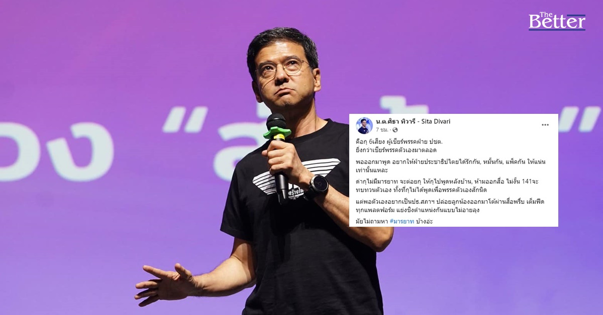 ล่าสุด น.ต.ศิธา ทิวารี แกนนำพรรคไทยสร้างไทยได้โพสต์ข้อความ คือกุ 6เสียง ผู้เชียร์พรรคฝ่ายประชาธิปไตย ยิ่งกว่าเชียร์พรรคตัวเองมาตลอด