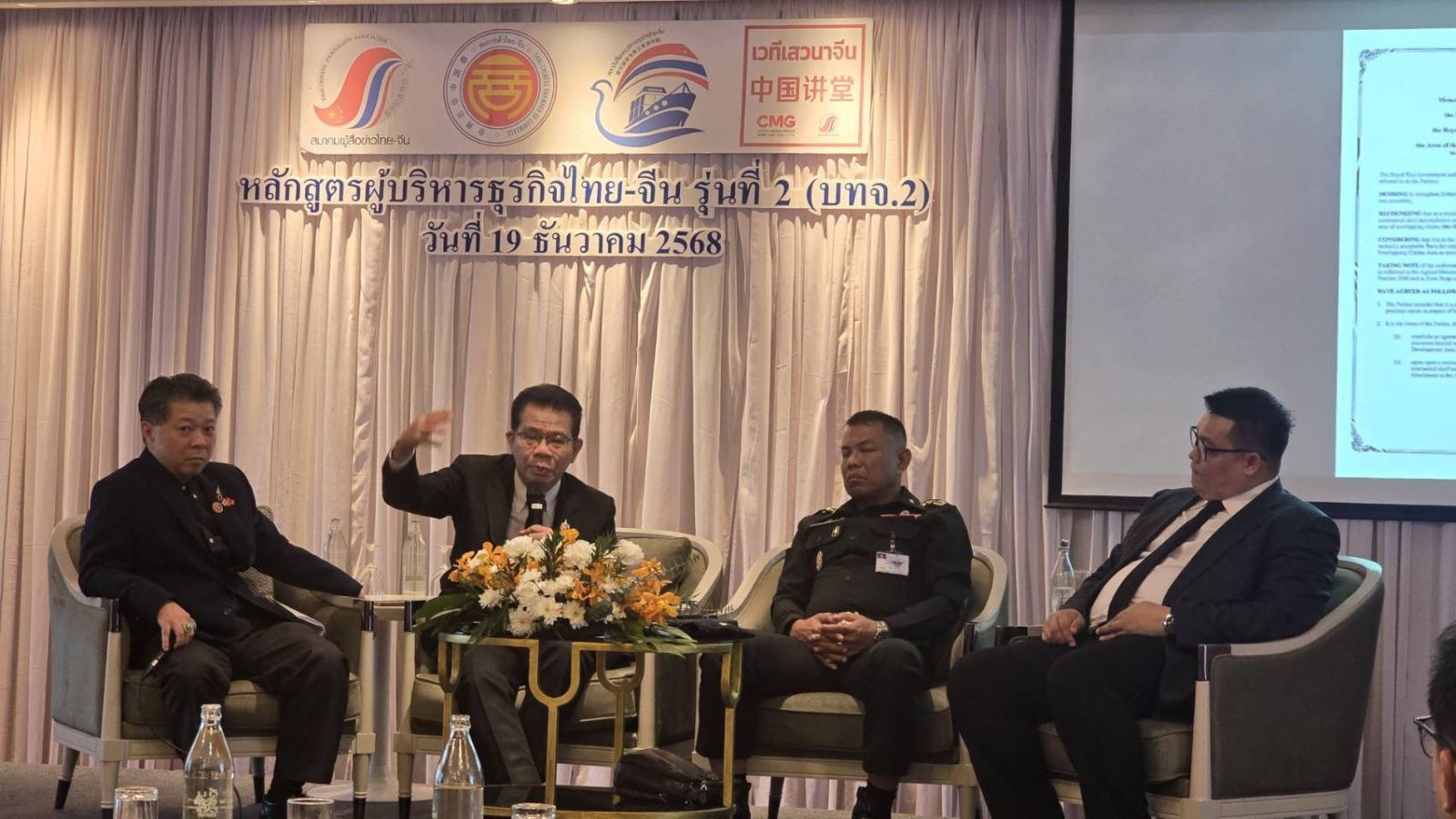 ที่โรงแรมดิเอมเมอรัลด์ รัชดา เมื่อวันที่ 19 ธันวาคม 2568 สมาคมผู้สื่อข่าวไทย–จีน จัดเสวนาพิเศษในหัวข้อ “วิกฤตไทย–กัมพูชา : ภูมิรัฐศาสตร์ใหม่ โอกาสธุรกิจและบทบาทสื่อในยุคสงครามข่าวสาร” โดยผู้ร่วมเสวนาประกอบด้วย นายชิบ จิตนิยม สมาชิกวุฒิสภา และรองประธานคณะกรรมาธิการการต่างประเทศ วุฒิสภา , พลโทชาคร บุญภักดี เจ้ากรมแผนที่ทหาร กองบัญชาการกองทัพไทย , ผศ.อัครพงษ์ ค่ำคูณ วิทยาลัยนานาชาติปรีดี พนมยงค์ มหาวิทยาลัยธรรมศาสตร์ และ ดร.กำพล มหานุกูล นายกสมาคมผู้สื่อข่าวไทย–จีน และผู้เข้าร่วมอบรมหลักสูตรผู้บริหารธุรกิจไทย-จีน ของสมาคมผู้สื่อข่าวไทย–จีน เข้าร่วมเวทีเสวนาอย่างพร้อมเพียง