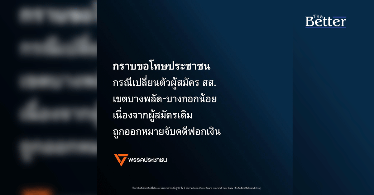 กราบขอโทษประชาชน กรณีต้องเปลี่ยนตัวผู้สมัคร สส. เขตบางพลัด-บางกอกน้อย