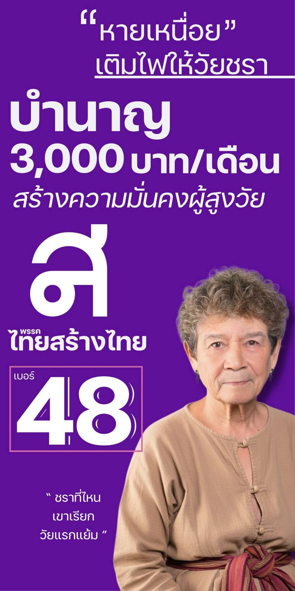 4. บำนาญประชาชน 3,000 บาท ดูแลผู้สูงอายุให้มีรายได้เพียงพอและสุขภาพแข็งแรง ไม่เป็นภาระลูกหลาน