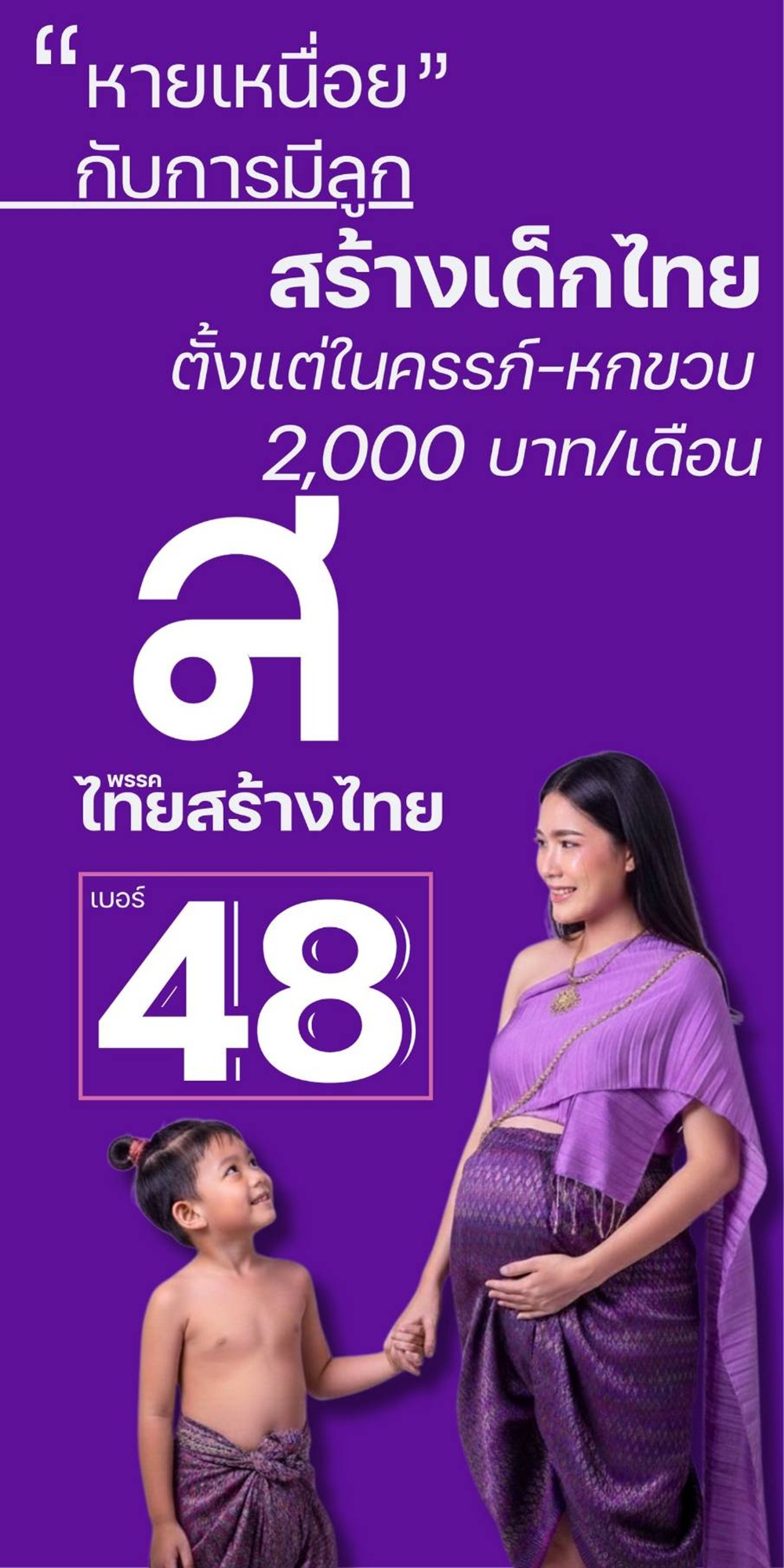 1. ดูแลตั้งแต่ในครรภ์จนถึง 6 ขวบ มอบเงินสนับสนุนเดือนละ 2,000 บาท เพื่อสร้างรากฐานชีวิตที่ดี