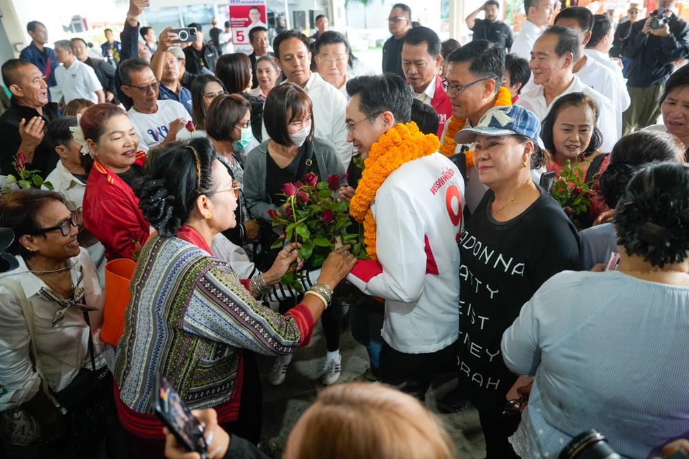 ศ.ดร.ยศชนัน วงศ์สวัสดิ์ แคนดิเดตนายกรัฐมนตรี พรรคเพื่อไทย พร้อมแกนนำพรรค ลงพื้นที่ตลาดบางใหญ่ จังหวัดนนทบุรี พบปะพี่น้องประชาชนและพ่อค้าแม่ค้า บรรยากาศสุดคึกคัก แม่ค้ามอบพิมเสนน้ำให้กำลังใจ บอกไม่ต้องสนโพล มั่นใจคะแนนเสียงเงียบ ยังหนุนเพื่อไทย