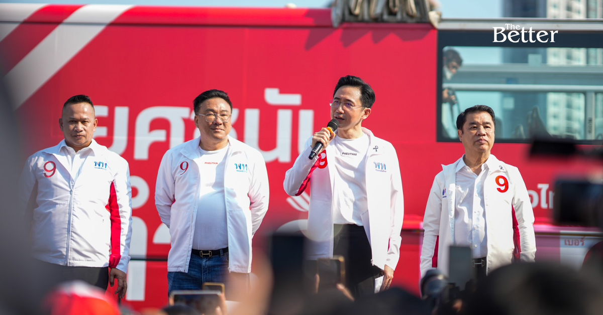 พรรคเพื่อไทยนำโดย “อ.เชน–หัวหน้าหนิม–ลุงซัน” ลงพื้นที่ฝั่งธนบุรีช่วงโค้งสุดท้ายเลือกตั้ง จัดปราศรัยย่อยบริเวณอนุสาวรีย์พระเจ้าตากสิน ปลุกพลังคนกรุง ชูนโยบายรถไฟฟ้า 20 บาทตลอดสาย แก้หนี้ทั้งระบบ