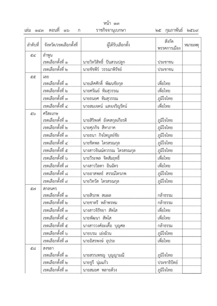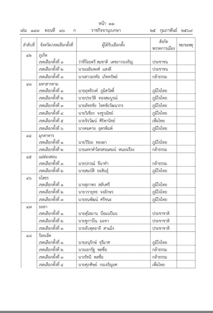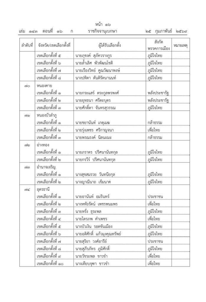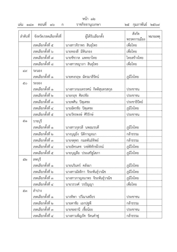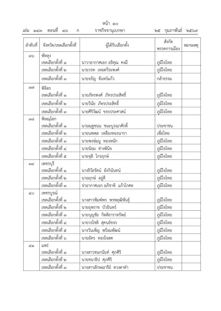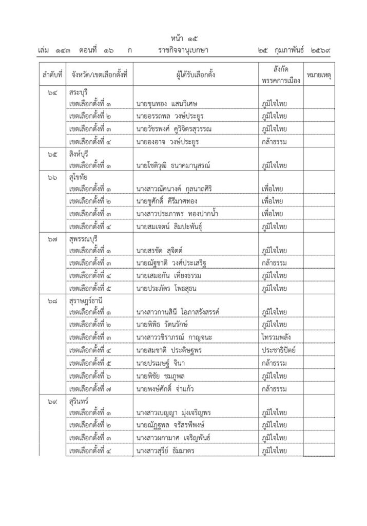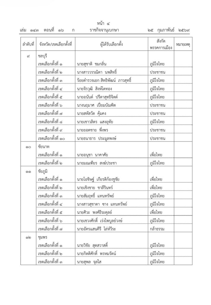 ราชกิจจานุเบกษา เผยแพร่ประกาศ กกต. รับรองผลการเลือกตั้ง สส. 396 คน