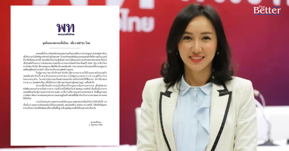 'เพื่อไทย’ เดินหน้าดันกฎหมายสมรสเท่าเทียมให้สำเร็จ เชื่อทุกความรักต้องได้รับการยอมรับ และมีศักดิ์ศรี