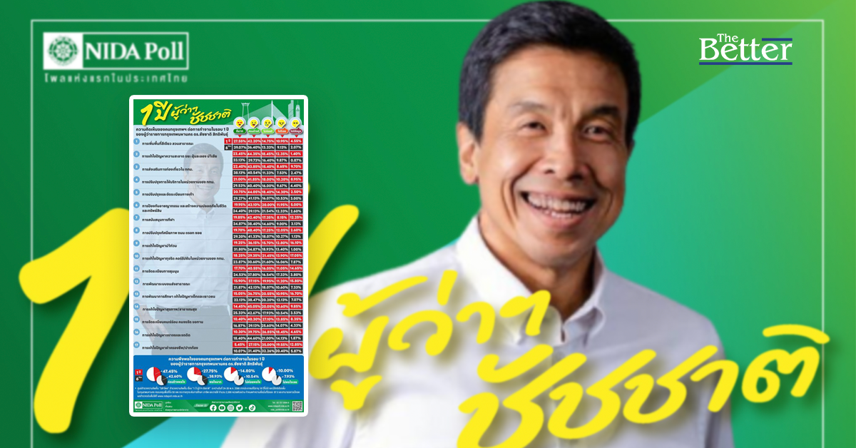 นิด้าโพล เผย ผลสำรวจ “1 ปี ผู้ว่าฯ ชัชชาติ” ต่อ ผลงาน 17 ด้าน คนกรุง 47.45% ค่อนข้างพอใจ เพราะขยัน ตั้งใจ แก้ปัญหาเร็ว กทม.มีการเปลี่ยนแปลงไปในทิศทางที่ดีขึ้น