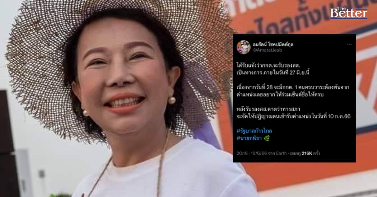 วันที่ 10 มิ.ย. 66 นางอมรัตน์ โชคปมิตต์กุล อดีต ส.ส.บัญชีรายชื่อและกรรมการบริหารพรรคก้าวไกล ทวีตข้อความผ่านทวิตเตอร์ส่วนตัว ถึงกรณีการรับรอง ส.ส. ของ กกต. ระบุข้อความดังต่อไปนี้