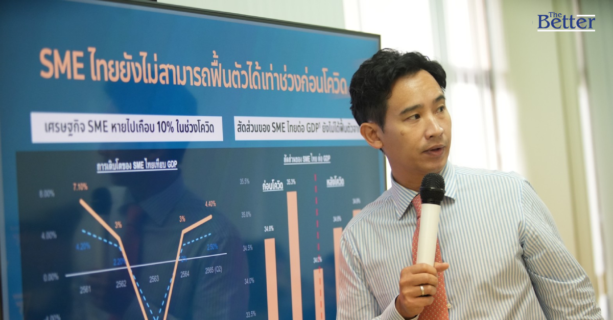 พิธากล่าวว่า พรรคก้าวไกลพร้อมทำงานกับ SME ไทยทุกคนเพื่อสร้างความเข้มแข็งให้ SME เพราะเราถือว่า SME คือรากฐานของเศรษฐกิจ แต่ที่ผ่านมา งบประมาณ SME มีเพียง 2,700 ล้านบาท เรือดำน้ำลำเดียว 30,000 ล้าน ชัดเจนมากว่าการดำเนินการของภาครัฐก่อนหน้านี้ไม่ได้ให้ความสำคัญกับผู้ประกอบการรายย่อยที่มากเพียงพอ