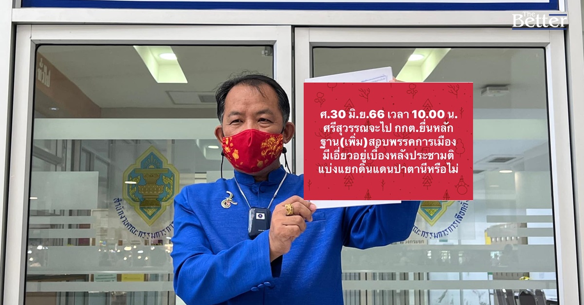นายศรีสุวรรณ จรรยา ผู้นำองค์กรรักชาติ รักแผ่นดิน เปิดเผยว่า ตามที่ตนได้เดินทางไปร้องสำนักงานคณะกรรมการการเลือกตั้ง(กกต.) เพื่อชี้เบาะแสให้ กกต.และนายทะเบียนพรรคการเมืองได้ตรวจสอบว่ามีกรรมการบริหารหรือพรรคการเมืองใดมีพฤติการณ์สนับสนุนทั้งเบื้องหน้าและเบื้องหลังขบวนนักศึกษาที่จัดกิจกรรมเปิดตัวเมื่อ 7 มิ.ย.66 ที่ผ่านมา ณ มอ.วิทยาเขตปัตตานีซึ่งมีการจัดทำประชามติแยกดินแดนอันเข้าข่ายจะขัดต่อรัฐธรรมนูญและกฎหมายอาญาแผ่นดินเมื่อ 16 มิ.ย.66 แล้วนั้น