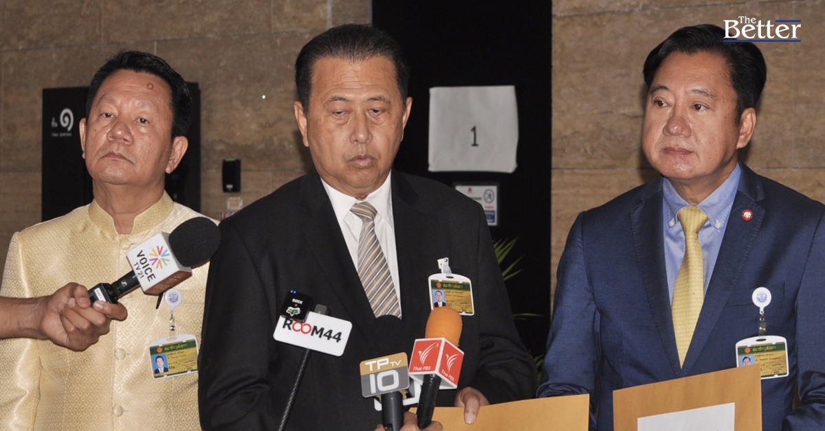 นายเสรี สุวรรณภานนท์ ประธานคณะกรรมาธิการ (กมธ.) การพัฒนาการเมือง และการมีส่วนร่วมของประชาชน วุฒิสภา (ส.ว.) และนายสมชาย แสวงการ ประธานกมธ. สิทธิมนุษยชน สิทธิเสรีภาพ และการคุ้มครองผู้บริโภค กล่าวภายหลังการรับหนังสือจทกกลุ่มศูนย์รวมประชาชนปกป้องสถาบัน(ศปปส.) และกลุ่มรามคำแหงรักสถาบัน ถึงกรณีการแถลงข่าวร่วมกันระหว่างพรรคก้าวไกลและพรรคเพื่อไทย ที่มีการระบุยืนยันร่วมกันให้ความเห็นชอบกฎหมายสําคัญเพื่อประชาชน ซึ่งรวมถึงการนิรโทษกรรมคดีแสดงออกทางการเมือง และการแก้ไขกฎหมายเกี่ยวกับการปฏิรูปกองทัพ ได้แก่ ร่างพระราชบัญญัติจัดระเบียบราชการกระทรวงกลาโหม ร่างพระราชบัญญัติกฎอัยการศึก และร่างพระราชบัญญัติการรักษาความมั่นคงภายในราชอาณาจักร ตามที่พรรคก้าวไกลเสนอ ส.ว.จะให้พรรคก้าวไกลยอมถอยหรือไม่