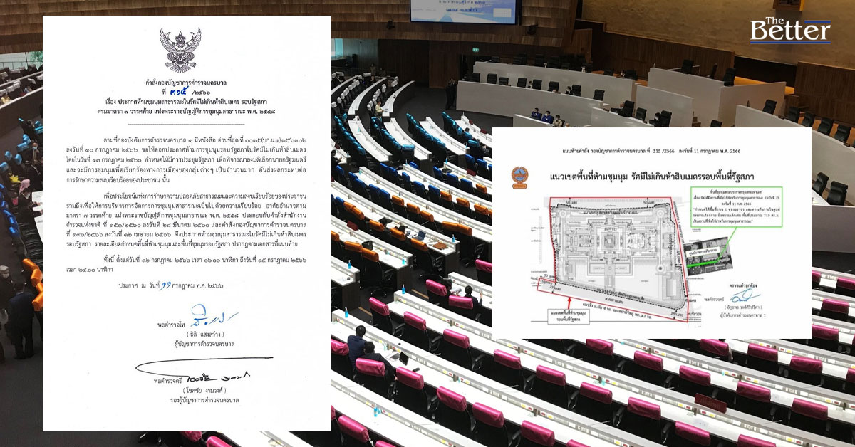 โดยในวันที่ 13 กรกฎาคม 2566 กำหนดให้มีการประชุมรัฐสภา เพื่อพิจารณาลงมติเลือกนายกรัฐมนตรี และจะมีการชุมนุมเพื่อเรียกร้องทางการเมืองของกลุ่มต่างๆเป็นจำนวนมาก อันส่งผลกระทบต่อการรักษาความสงบเรียบร้อยของประชาชนนั้น เพื่อประโยชน์แห่งการรักษาความปลอดภัยสาธารณะและความสงบเรียบร้อยของประชาชนรวมถึงเพื่อให้การบริหารการจัดการการชุมนุมสาธารณะเป็นไปด้วยความเรียบร้อย อาศัยอำนาจตามมาตรา 7 วรรคท้าย แห่งพระราชบัญญัติการชุมนุมสาธารณะ พ.ศ.2558 ประกอบกับคำสั่งสำนักงานตำรวจแห่งชาติ ที่ 151/2560 ลงวันที่ 28 มีนาคม 2560 และคำสั่งกองบัญชาการตำรวจนครบาลที่ 196/2566 ลงวันที่ 12 เมษายน 2566 จึงประกาศห้ามชุมนุมสาธารณะในรัศมีไม่เกิน 50 เมตร รอบรัฐสภา รายละเอียดกำหนดพื้นที่ห้ามชุมนุมและพื้นที่ชุมนุมรอบรัฐสภา ปรากฏตามเอกสารที่แนบท้าย
