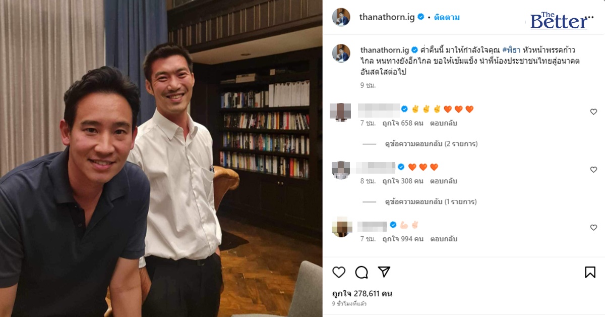 "ธนาธร"โพสต์ภาพคู่ "พิธา" ให้กำลังใจ บอก"หนทางยังอีกไกล ขอให้เข้มแข็ง นำพี่น้องประชาชนไทยสู่อนาคตอันสดใสต่อไป"
