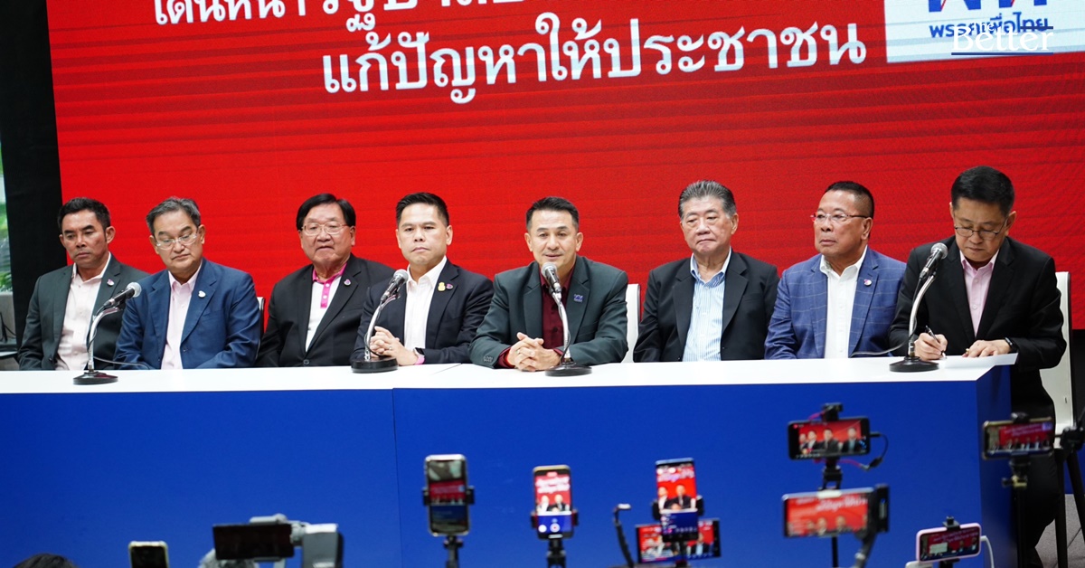 จากนั้น นพ.ชลน่าน และนายวราวุธ ร่วมกันแถลงข่าว โดย นพ.ชลน่าน กล่าวว่า 8 พรรคร่วมรัฐบาลมีมติร่วมกัน มอบหมายให้พรรคเพื่อไทยมาดำเนินการหาเสียงสนับสนุน 3 แนวทาง ทั้ง จาก สมาชิกวุมิสภา สว. เป็นแนวทางที่ 1 ขณะแนวทางที่ 2 หาคะแนนเสียงมาจากพรรคการเมืองกลุ่ม สส. วันนี้พรรคเพื่อไทยได้เชิญพรรคชาติไทยพัฒนา มาหารือ ต้องขอบขอบคุณพรรคชาติไทยพัฒนา ที่ให้เกียรติพรรคเพื่อไทยเป็นอย่างดี ที่เดินทางมาพบปะพูดคุยกัน ยืนยันเชิญพรรคชาติไทยพัฒนามาหาแนวทาง ความเห็นในการจัดตั้งรัฐบาล ไม่ใช่การเชิญมาตั้งรัฐบาล