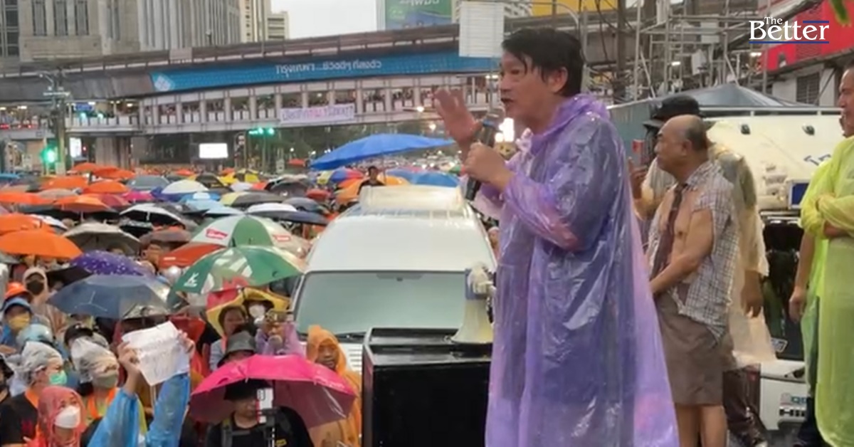 โดยก่อนเริ่มกิจกรรมได้มีฝนตกลงมา มวลชนได้หลบฝนอยู่ข้างทาง บางส่วนกางร่ม บางส่วนก็ใส่เสื้อกันฝน
