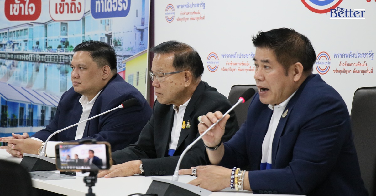ที่พรรคพลังประชารัฐ นายสันติ พร้อมพัฒน์ เลขาธิการพรรคพลังประชารัฐ พร้อมด้วย ร.อ.ธรรมนัส พรหมเผ่า ส.ส.พะเยา ในฐานะประธานประสานงาน ส.ส.พรรคพลังประชารัฐ และนายไผ่ ลิกค์ ส.ส.กำแพงเพชร พรรคพลังประชารัฐ ตั้งโต๊ะแถลงข่าวผลหารือหาแนวทางแก้วิกฤตและทางออกประเทศร่วมกับพรรคเพื่อไทย