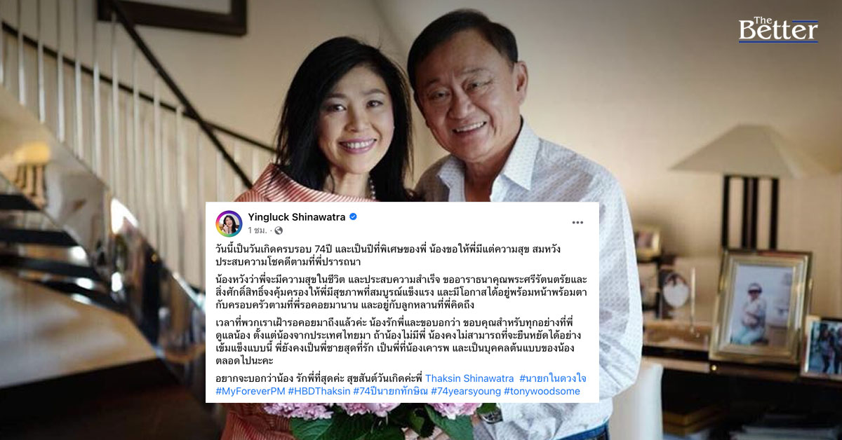 "ยิ่งลักษณ์" เบิร์ธเดย์ "พี่ชาย" ขอให้ได้อยู่พร้อมครอบครัวตามที่รอคอยมานาน