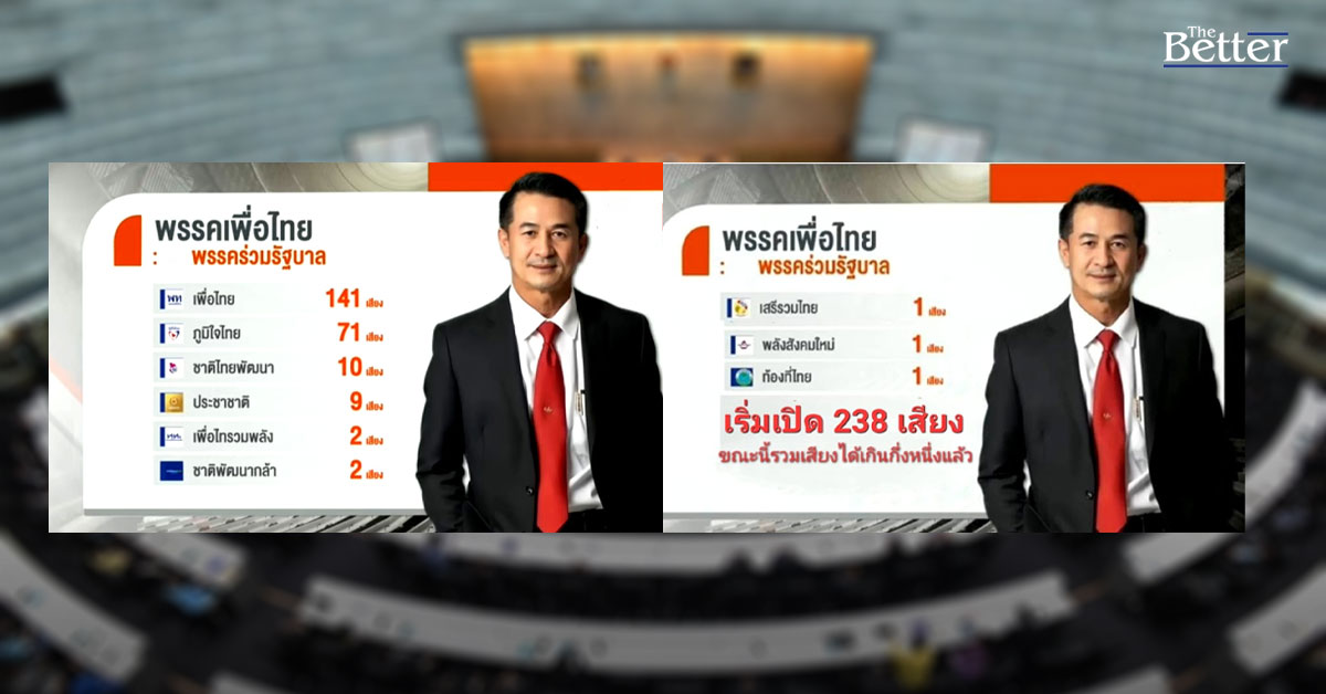 "เพจหมอชลน่านFc" เผย "เพื่อไทย"รวมเสียงตั้งรัฐบาลได้ 238 เสียง เกินกึ่งหนึ่งของ สส.แล้ว เตรียมเปิดตัววันนี้-พรุ่งนี้