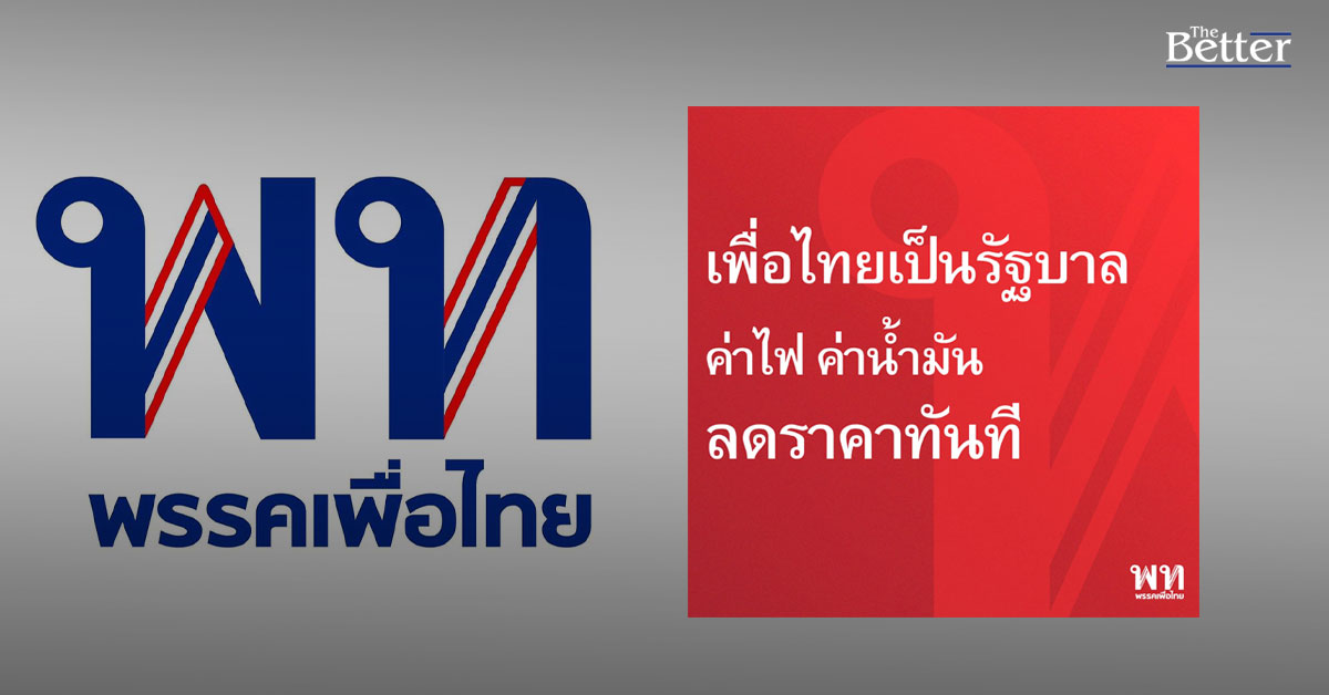 พรรคเพื่อไทย ประกาศผ่านเพจเฟซบุ๊ก หากเป็นรัฐบาลลดราคาพลังงาน น้ำมัน ไฟฟ้าและก๊าช ลดภาระค่าใช้จ่ายในชีวิตประจำวันให้ประชาชน