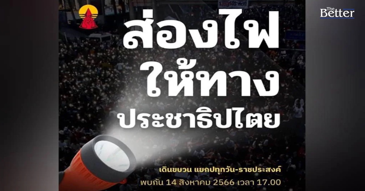 เพจแนวร่วมธรรมศาสตร์และการชุมนุม – United Front of Thammasat and Demonstration โพสต์ข้อความระบุว่า 14 สิงหาคม 2566 ขอเรียนเชิญประชาชนและ ส.ส. ผู้มีใจรักในประชาธิปไตย เข้าร่วมเรียกขานจิตวิญญาณประชาธิปไตย ออกมาภายในงาน “ส่องไฟให้ทางประชาธิปไตย” จาก แยกปทุมวัน-ราชประสงค์ วันจันทร์ ที่ 14 สิงหาคม 2566 เวลา 17.00 น