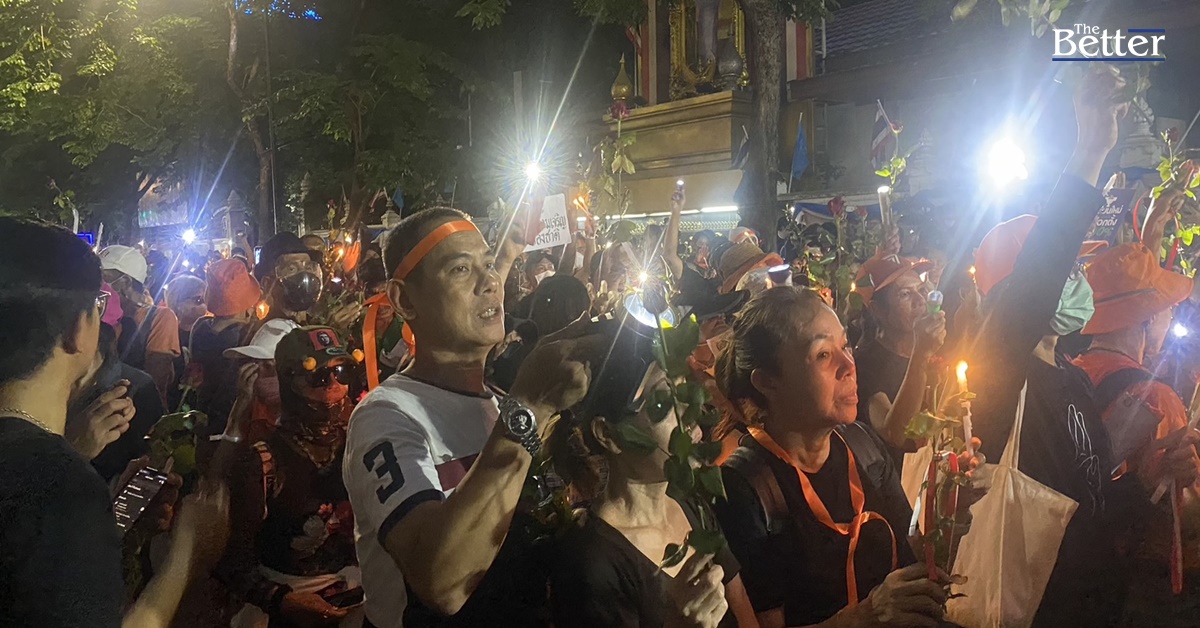 ม็อบแนวร่วมธรรมศาสตร์ฯ จุดเทียนไว้อาลัย นปช. 99 ศพ วัดปทุมฯ ขู่ยกระดับการชุมนุม หากเพื่อไทย จับมือตั้งรัฐบาลกับเผด็จการ