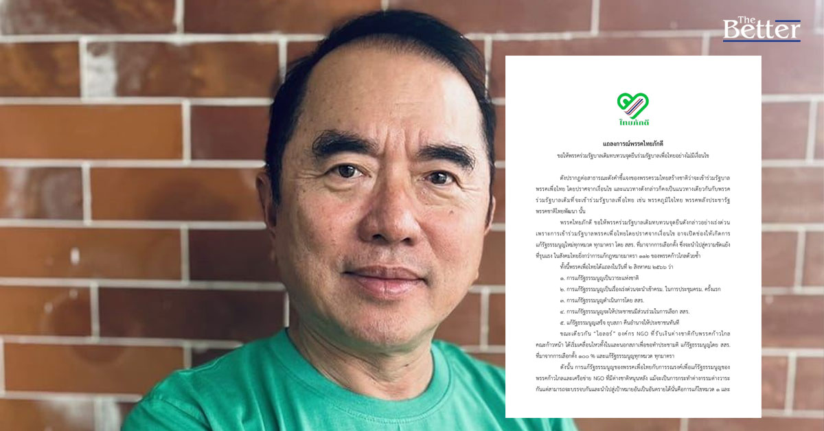 "ไทยภักดี" ออกแถลงการณ์ จี้ รทสช.- พรรคร่วมขั้วเดิม ทบทวนจุดยืนร่วมรัฐบาลเพื่อไทย ระวังเข้าข่ายสมยอมแก้รธน.เปิดช่อง “ก้าวไกล” แก้ได้ทุกหมวด หวั่นล้มล้าง ทำแตกแยกหนักยิ่งกว่าเดิม