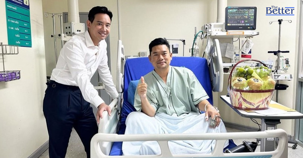 นายพิธา ลิ้มเจริญรัตน์ หัวหน้าพรรคก้าวไกล โพสต์ภาพผ่านอินสตาแกรม ระหว่างเยี่ยม อานุภาพ ลิขิตอำนวยชัย สส.สมุทรสงคราม พรรคก้าวไกล ซึ่งเกิดอาการหน้ามืดเป็นลมระหว่างร่วมประชุมที่รัฐสภาเพื่อโหวตนายกรัฐมนตรีรอบที่ 3 จนต้องหามตัวส่ง รพ.วชิระ วานนี้