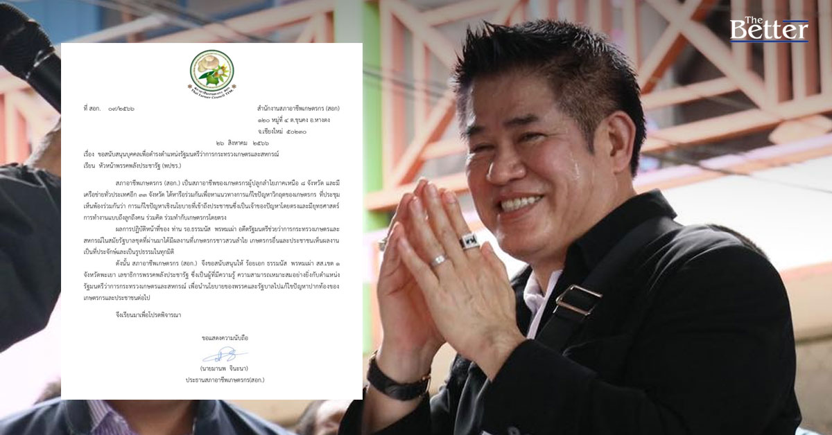 กลุ่มสภาอาชีพเกษตรกร นำโดย นายมานพ จินะนา ประธานสภาอาชีพเกษตรกร (สอก.) ยื่นหนังสือถึงหัวหน้าพรรคพลังประชารัฐ เรื่องสนับสนุนบุคคลเพื่อดำรงตำแหน่งรัฐมนตรีว่าการกระทรวงเกษตรและสหกรณ์ โดยระบุว่า สภาอาชีพเป็นสภาอาชีพของเกษตรกรผู้ปลูกลำไยภาคเหนือ 8 จังหวัด และมีเครือข่ายทั่วประเทศอีก 33 จังหวัด ได้หารือร่วมกันเพื่อหาแนวทางการแก้ไขปัญหาวิกฤตของเกษตรกร ที่ประชุม เห็นพ้องร่วมกันว่า การแก้ไขปัญหาเชิงนโยบายที่เข้าถึงประชาชนซี่งเป็นเจ้าของปัญหาโดยตรงและมียุทธศาสตร์ การทำงานแบบถึงลูกถึงคน ร่วมคิด ร่วมทำกับเกษตรกรโดยตรง ผลการปฏิบัติหน้าที่ของ รอ.ธรรมนัส พรหมเผ่า อดีตรัฐมนตรีช่วยว่าการกระทรวงเกษตรและสหกรณ์ในสมัยรัฐบาลชุดที่ผ่านมาได้มีผลงานที่เกษตรกรชาวสวนลำไย เกษตรกรอื่นและประชาชนเห็นผลงานเป็นที่ประจักษ์และเป็นรูปธรรมในทุกมิติ