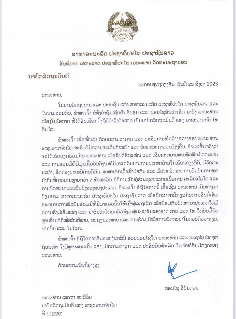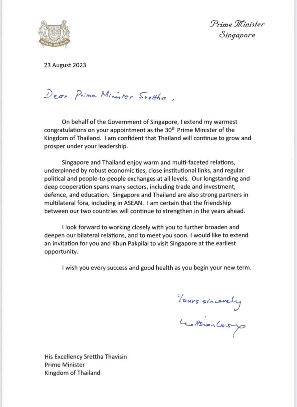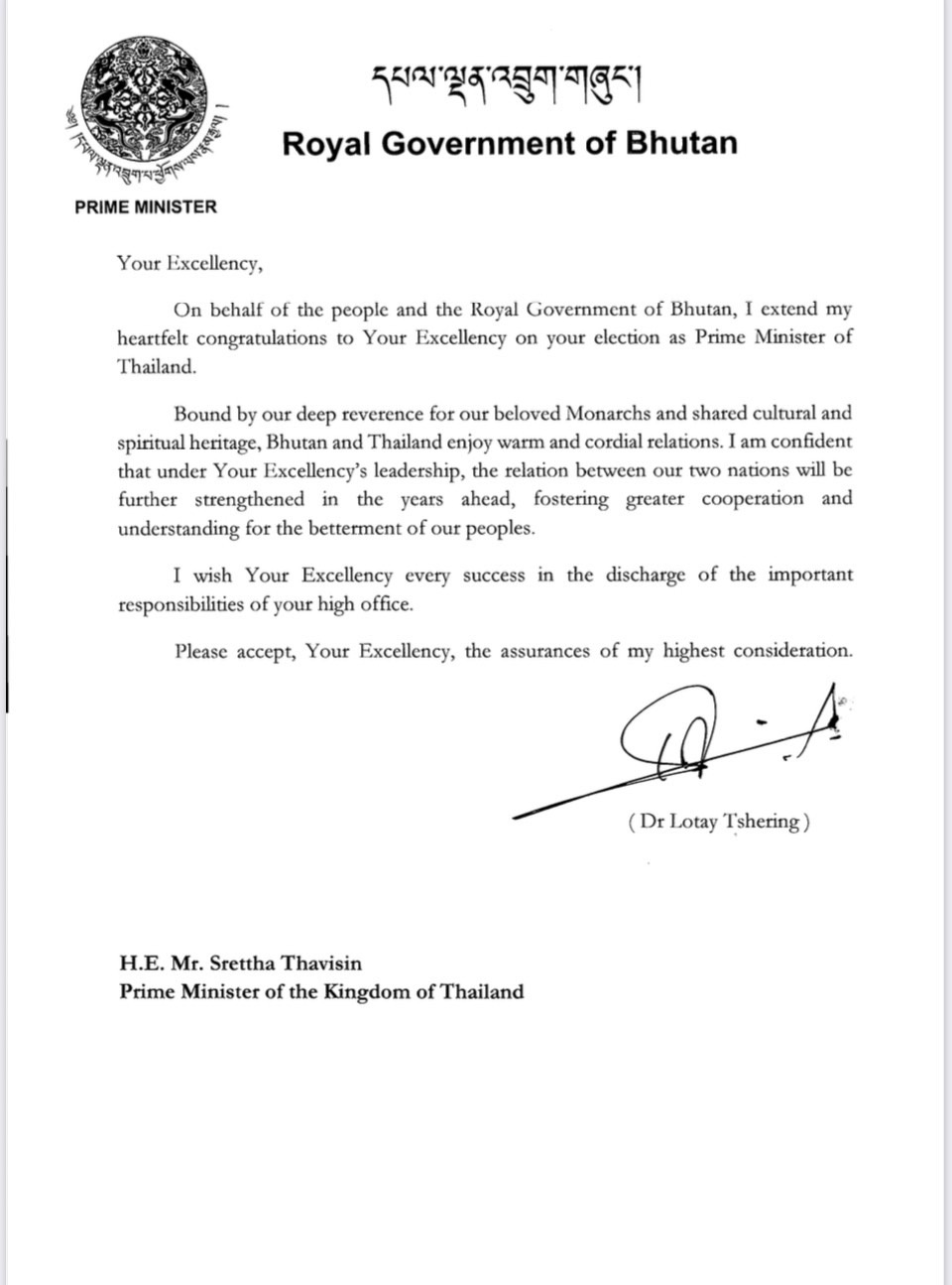นางนัทรียา ทวีวงศ์ รองเลขาธิการนายกรัฐมนตรี ฝ่ายบริหาร เผย ขณะนี้มีผู้นำประเทศต่างๆ ร่วมแสดงความยินดีกับนายเศรษฐา ทวีสิน นายกรัฐมนตรี ผ่านช่องทางต่างๆ ทั้งการส่งหนังสือทางการ และผ่านทางสื่อโซเชียล อาทิ โจ ไบเดน ประธานาธิบดีสหรัฐอเมริกา ,ลี เซียน ลุง นายกรัฐมนตรีสิงคโปร์ ,ฮุน มาเนต นายกรัฐมนตรีกัมพูชา ,สอนไซ สีพันดอน นายกรัฐมนตรีสาธารณรัฐประชาธิปไตยประชาชนลาว ,ดาโช เชริง โตบเกย์ นายกรัฐมนตรีภูฏาน สมเด็จพระราชาธิบดีฮัจญี ฮัสซานัล โบลเกียห์ นายกรัฐมนตรีบรูไน
