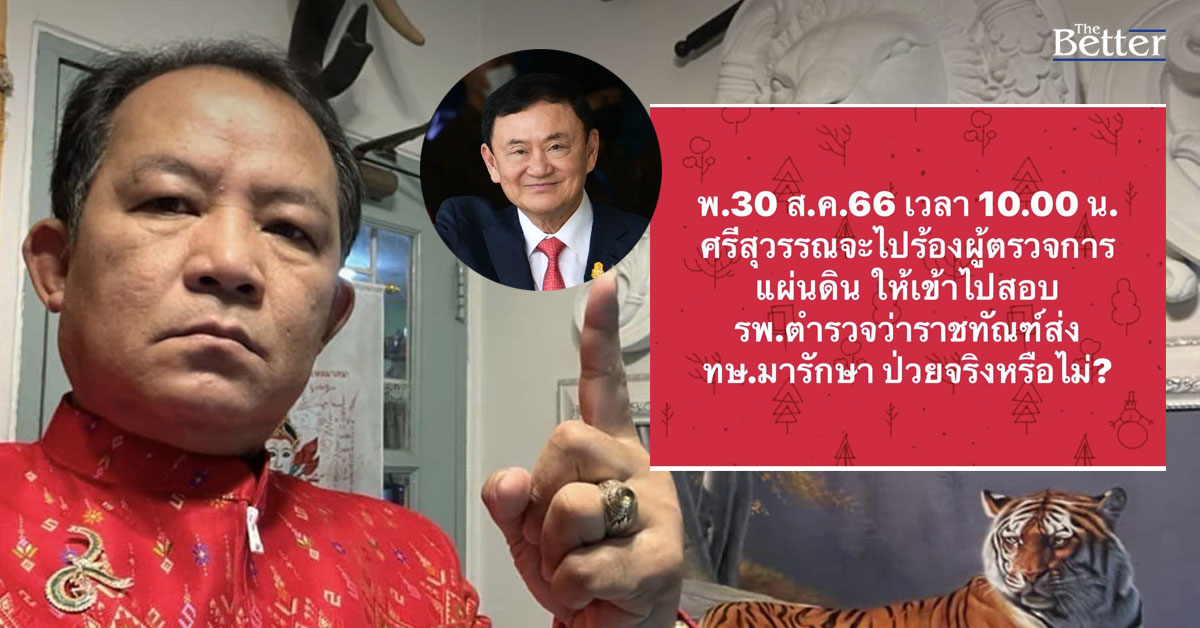 นายศรีสุวรรณ จรรยา ผู้นำองค์กรรักชาติ รักแผ่นดิน เผยว่า กรณี นายทักษิณ ชินวัตร อดีตนายกรัฐมนตรี ผู้ต้องขังในคดีอาญาที่ถูกหมอจากราชทัณฑ์วินิจฉัยว่าป่วยหลายโรคต้องมานอนรักษาตัวใน รพ. ตำรวจ ซึ่งเป็นหน่วยงานของรัฐเข่นกัน โดยจัดให้อยู่ในห้องพิเศษ ขั้นพิเศษ ซึ่งดูจะเกินสถานะของนักโทษคดีอาญา แถมยังช่วยวินิจฉัยรับรองการป่วยให้กับนักโทษดังกล่าวเฉกเช่นเดียวกับหมอจากราชทัณฑ์ ซึ่งยังเป็นที่เคลือบแคลงใจของประชาชนส่วนใหญ่ว่า นช.ทักษิณป่วยหนักจนต้องส่งออกมารักษานอกโรงพยาบาลราชทัณฑ์จริงหรือไม่ ซึ่งผู้สื่อข่าวพยายามสอบถามหมอต่างๆเหล่านี้ว่าป่วยจริงหรือไม่ อย่างไร ก็ได้รับการปฎิเสธตลอดโดยอ้างกฎหมายห้ามเปิดเผย