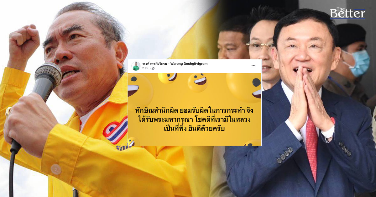 "โชคดีมีในหลวงเป็นที่พึ่ง" หมอวรงค์ อดีต กปปส.โพสต์ข้อความยินดีครอบครัวชินวัตร ได้รับพระมหากรุณาอภัยลดโทษจาก 8 ปี เหลือ 1