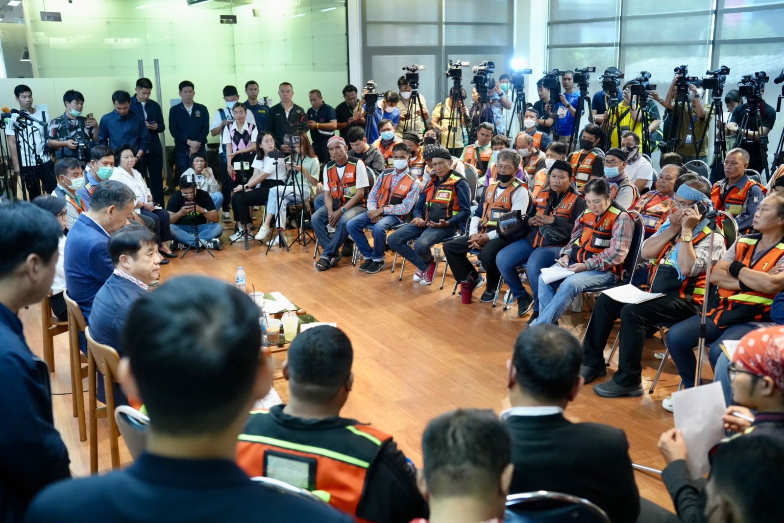 ที่พรรคเพื่อไทย นายเศรษฐา ทวีสิน นายกรัฐมนตรีและรัฐมนตรีว่าการกระทรวงการคลัง นายสุริยะ จึงรุ่งเรืองกิจ รัฐมนตรีว่าการกระทรวงคมนาคม นางมนพร เจริญศรี รัฐมนตรีช่วยว่าการกระทรวงคมนาคม และนางพวงเพ็ชรุ ชุนละเอียด รัฐมนตรีประจำสำนักนายกรัฐมนตรี พร้อมแกนนำพรรคและ สส.พรรคเพื่อไทย ร่วมพูดคุยกับตัวแทนผู้ประกอบการรถจักรยานยนต์รับจ้าง ประมาณ 100 คน ซึ่งร้องขอให้รัฐบาลช่วยเหลือแก้ไขปัญหาและอุปสรรคการประกอบอาชีพในสถานการณ์ที่ค่าครองชีพและราคาน้ำมันอันเป็นต้นทุนการประกอบอาชีพสูง เพื่อนำปัญหาไปสู่การที่รัฐบาลจะพิจารณาแนวทางแก้ไข