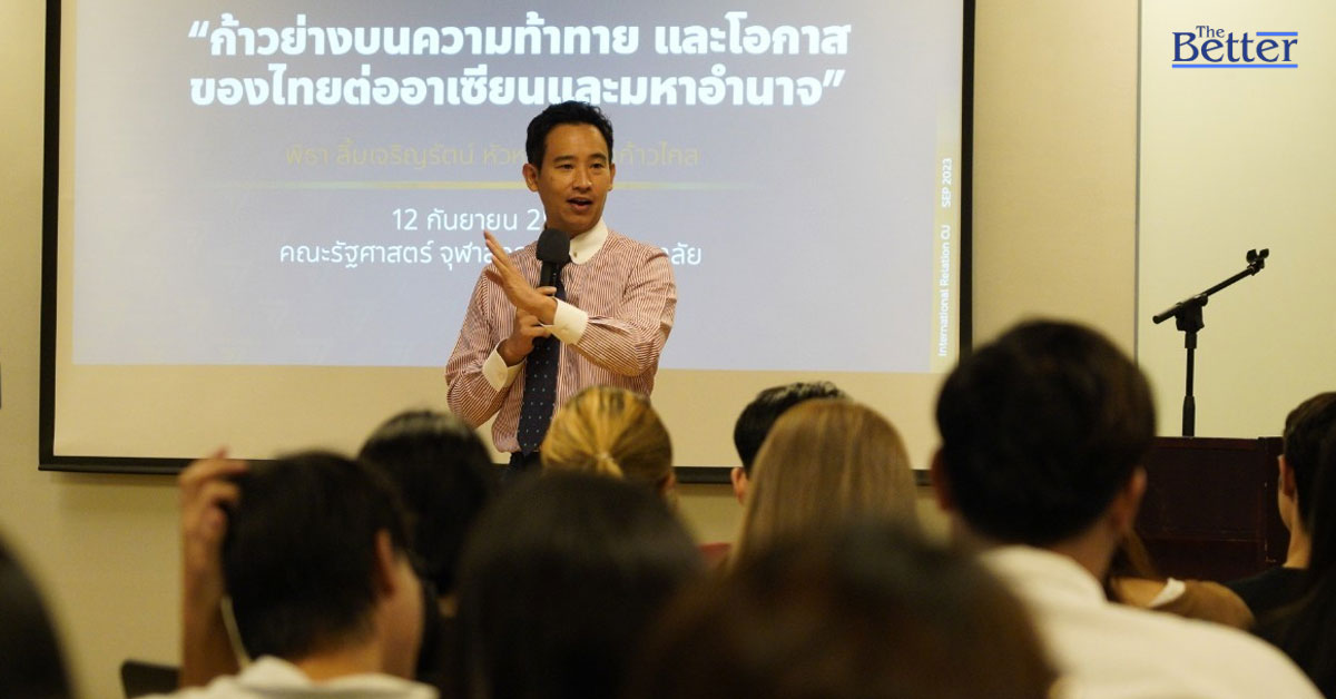 "พิธา" บรรยายพิเศษให้นิสิตจุฬาฯ หัวข้อ “ก้าวย่างบนความท้าทาย และโอกาสของไทยต่ออาเซียนและมหาอำนาจ” โชว์วิสัยน์ทัศน์ด้านต่างประเทศ ชูนโยบายพาไทยืนอย่างมีศักดิ์ศรี ชี้เป็นยุคท้าทายสำคัญ
