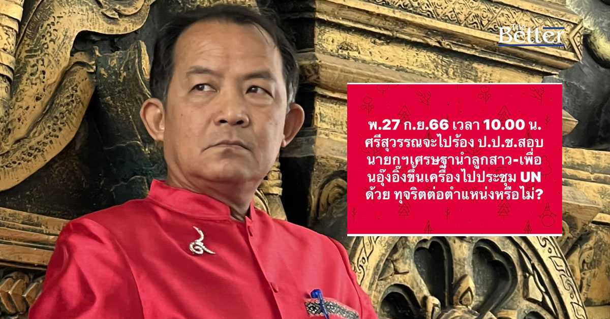 "ศรีสุวรรณ" จ่อร้อง ป.ป.ช. 27กย. สอบ “เศรษฐา” หนีบลูกสาว-เพื่อนอุ๊งอิ๊งไปยูเอ็น ทุจริตต่อตำแหน่งหน้าที่หรือไม่ ชี้ความผิดสำเร็จแล้ว