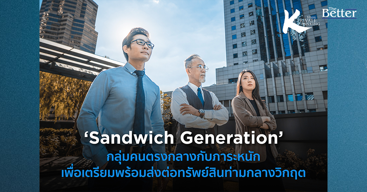 ความก้าวหน้าทางการแพทย์ ทำให้คนมีอายุยืนยาวขึ้น ในหนึ่งครอบครัวจึงประกอบไปด้วยสมาชิกครอบครัวตั้งแต่ 3 รุ่นขึ้นไป ‘Sandwich Generation’ คือกลุ่มคนรุ่นตรงกลาง ต้องแบกรับหน้าที่จัดการดูแลสมาชิกต่างรุ่นในครอบครัวที่มีความต้องการแตกต่างกัน สร้างความซับซ้อนเรื่องการบริหารจัดการทรัพย์สิน KBank Private Banking เผยคำแนะนำในการจัดการเพื่อให้การเก็บรักษาและส่งต่อทรัพย์สินของครอบครัวประสบความสำเร็จอย่างยั่งยืน และตรงตามความต้องการของคนทุกรุ่น