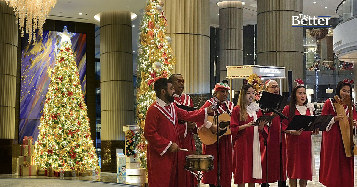 คณะนักร้องประสานเสียงได้ขับกล่อมบทเพลงเทศกาลคริสต์มาส เพื่อมอบความสุขแก่แขกผู้มีเกียรติที่มาร่วมงานและสร้างบรรยากาศการเฉลิมฉลองให้ระหว่างกิจกรรมเปิดไฟต้นคริสต์มาสในครั้งนี้