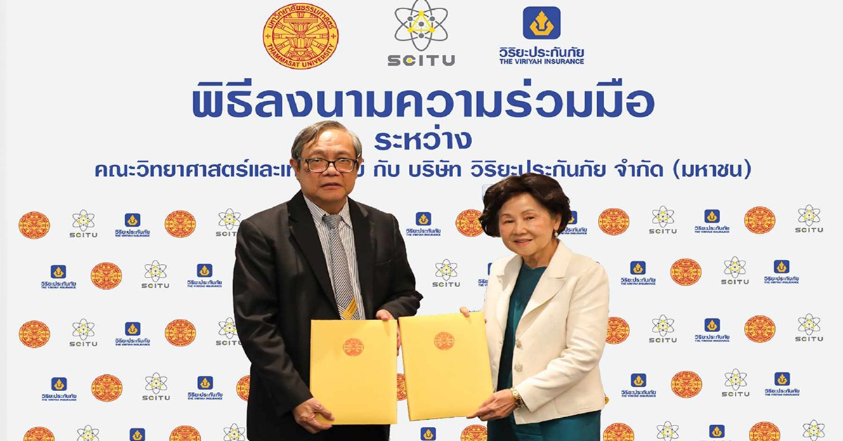 รศ.เกศินี วิฑูรชาติ อธิการบดี มหาวิทยาลัยธรรมศาสตร์ และนายวิญญู อังศุนิตย์ ผู้ช่วยกรรมการผู้จัดการ บริษัท วิริยะประกันภัย จำกัด (มหาชน) ร่วมลงนามบันทึกข้อตกลงความร่วมมือทางวิชาการ ระหว่างบริษัทฯ และคณะวิทยาศาสตร์และเทคโนโลยี มหาวิทยาลัยธรรมศาสตร์ โดยร่วมกันกำหนดแนวทางในการดำเนินกิจกรรมด้านการศึกษาและการฝึกอบรมผ่านโครงการและหลักสูตรการเรียนรู้ต่างๆ เพื่อส่งเสริมการพัฒนาองค์ความรู้ด้านวิชาชีพประกันภัย