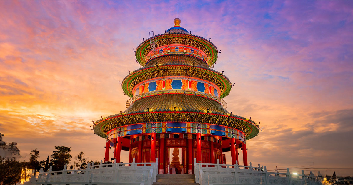 ตัววิหาร “อี่ ทง เทียน ไท้” ก่อสร้างมาตั้งแต่ปี 2558 จำลองแบบมาจากวิหารเทียนถาน กรุงปักกิ่ง ออกแบบเป็นรูปทรงกลมตามอาคารต้นแบบ สร้างซ้อนขึ้นไป 3 ชั้น มุงด้วยกระเบื้องสีเขียว โดยรอบภายในวิหารมีภาพวาดพระโพธิสัตว์กวนอิมปางต่างๆ ภายในตัวอาคารยังได้เสริมความวิจิตรตระการตาด้วยภาพเขียนลายต่างๆ ที่สื่อให้เห็นถึงแนวคิดเรื่องจักรวาล ภพภูมิ ความสมบูรณ์และมั่งมี หลังคาของวิหารมุงด้วยกระเบื้องหลังคาแบบเซรามิกโซลาร์เซลล์ เพื่อผลิตพลังงานทดแทน นับเป็นวิหารแห่งแรกในประเทศไทยที่ใช้กระเบื้องโซลาร์เซลล์ รวมถึงติดตั้งสายล่อฟ้า ที่เปรียบเสมือนการรับพลังจากเบื้องบน เชื่อกันว่าคนที่มากราบไหว้ขอพรจะมีสุขภาพดี มีโชคลาภ