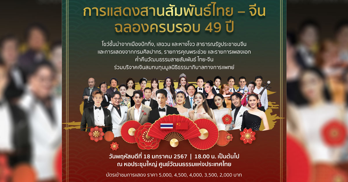 การแสดงสานสัมพันธ์ไทย – จีน ฉลองครบรอบ 49 ปี THAILAND-CHINA 49 YEARS OF DIPLOMATIC ANNIVERSARY CONCERT