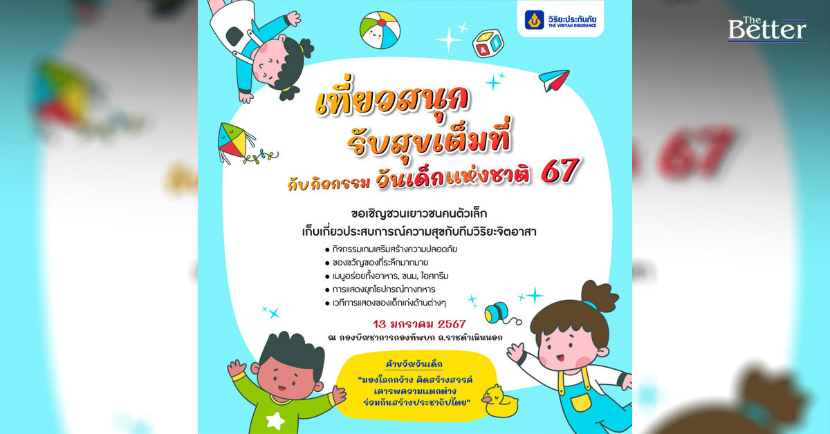วันเด็กปีนี้ บริษัท วิริยะประกันภัย จำกัด (มหาชน) ร่วมสนับสนุน กองทัพบก (ทบ.) จัดงานวันเด็กแห่งชาติ ประจำปี 2567 เพื่อสร้างความสุขสนุกสนานให้แก่เด็กและเยาวชน พร้อมเสริมสร้างพัฒนาการด้านการเรียนรู้ผ่านกิจกรรมต่างๆ ภายในงาน รวมถึงส่งเสริมความสัมพันธ์อันดีระหว่างสมาชิกในครอบครัวเนื่องในวันสำคัญดังกล่าว ณ กองบัญชาการกองทัพบก ถนนราชดำเนินกลาง แขวงบางขุนพรหม เขตพระนคร กรุงเทพมหานคร ในวันเสาร์ ที่ 13 มกราคม 2567 ตั้งแต่เวลา 08.00 – 16.00 น.
