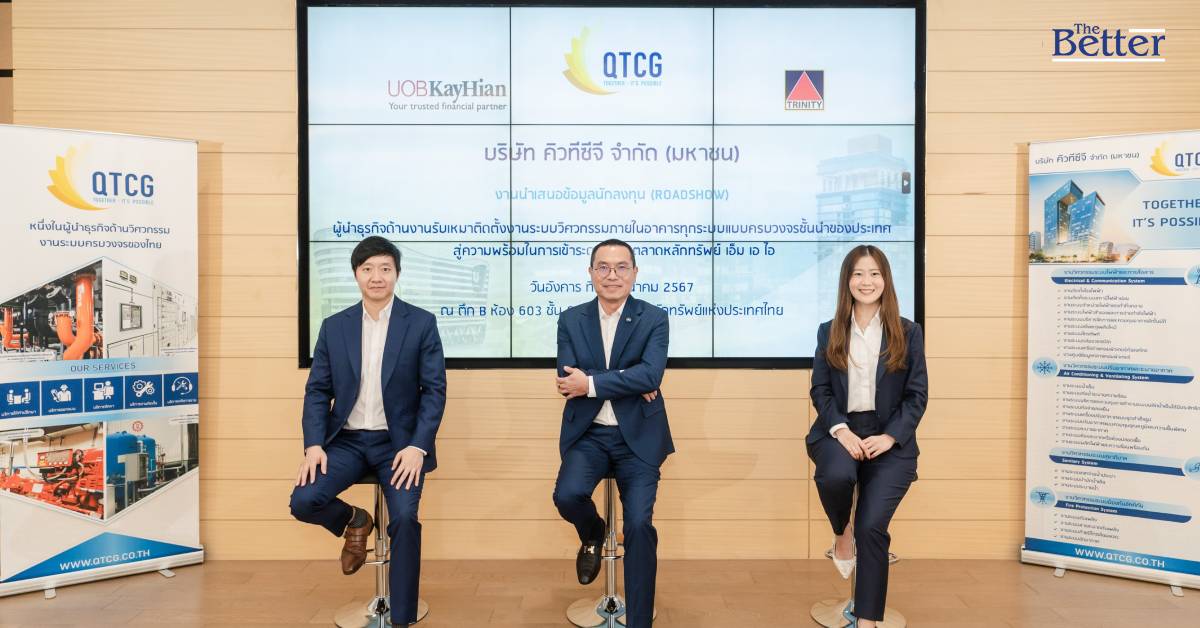 นายธิติวัฒน์ เงินนำโชคธนรัตน์ (กลาง) ประธานเจ้าหน้าที่บริหาร พร้อมด้วย นางสาวปองกานต์ งามแสงรัตน์ (ขวา) กรรมการผู้อำนวยการฝ่ายงานบัญชีและการเงิน บมจ.คิวทีซีจี (QTCG) และนายกิตติชัย นาคะประเสริฐกุล (ซ้าย) รองกรรมการผู้จัดการอาวุโส ฝ่ายวาณิชธนกิจ บริษัทหลักทรัพย์ ยูโอบี เคย์เฮียน (ประเทศไทย) จำกัด (มหาชน) ในฐานะที่ปรึกษาทางการเงินและผู้จัดการการจัดจำหน่ายและรับประกันการจำหน่ายร่วม นำเสนอข้อมูลนักลงทุนในงาน Retail Investor Roadshow รูปแบบไฮบริด เพื่อตอกย้ำการเป็นผู้ดำเนินธุรกิจรับเหมาติดตั้งงานระบบวิศวกรรมประกอบอาคารแบบครบวงจรระดับพรีเมี่ยมชั้นนำของประเทศ โดย QTCG กำหนดราคาไอพีโอที่ 1.20 บาทต่อหุ้น เสนอขายต่อประชนทั่วไประหว่างวันที่ 27-29 มีนาคมนี้ และพร้อมเข้าทำการซื้อขายในหลักทรัพย์เอ็ม เอ ไอ วันที่ 4 เมษายน 2567