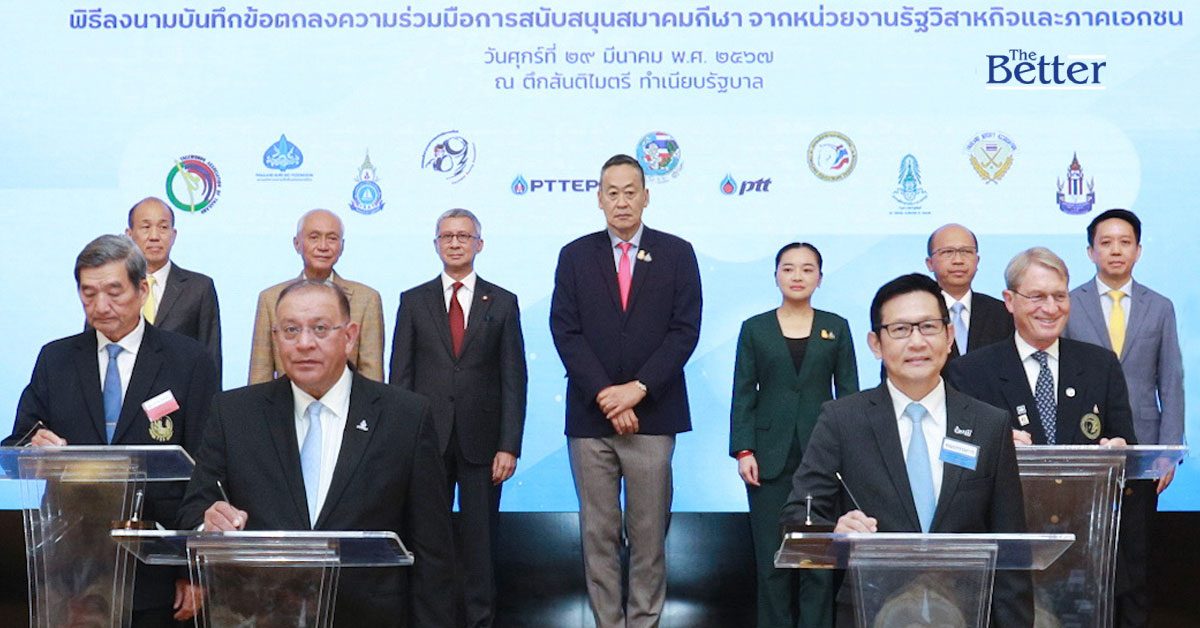 นายเศรษฐา ทวีสิน นายกรัฐมนตรี เป็นประธานในพิธีลงนามบันทึกข้อตกลงความร่วมมือการสนับสนุนสมาคมกีฬา จากหน่วยงานรัฐวิสาหกิจและภาคเอกชน โดย กลุ่ม ปตท. ได้ผนึกพลังร่วมขับเคลื่อนนโยบาย Soft Power ของประเทศทางด้านกีฬา โดยสนับสนุนสมาคมกีฬา จำนวน 20 สมาคม งบประมาณ 200 ล้านบาท และมีแผนการสนับสนุนอย่างต่อเนื่อง เป็นระยะเวลา 4 ปี (ปี พ.ศ. 2567 – พ.ศ.2570)เพื่อวางแผนการพัฒนานักกีฬาในระยะยาวอย่างครบวงจรให้มีประสิทธิภาพและยั่งยืน โดยมี นายอรรถพล ฤกษ์พิบูลย์ ประธานเจ้าหน้าที่บริหารและกรรมการผู้จัดการใหญ่ บริษัท ปตท. จำกัด (มหาชน) พร้อมด้วยผู้บริหารระดับสูง กลุ่ม ปตท. ได้แก่ นายมนตรี ลาวัลย์ชัยกุล ประธานเจ้าหน้าที่บริหาร บริษัท ปตท. สำรวจและผลิตปิโตรเลียม จำกัด (มหาชน) นายบัณฑิต ธรรมประจำจิต ประธานเจ้าหน้าที่บริหารและกรรมการผู้จัดการใหญ่ บริษัท ไทยออยล์ จำกัด (มหาชน) นายดิษทัต ปันยารชุน ประธานเจ้าหน้าที่บริหาร บริษัท ปตท.น้ำมันและค้าปลีก จำกัด (มหาชน) และผู้บริหารระดับสูง บริษัท พีทีที โกลบอล เคมิคอล จำกัด (มหาชน) บริษัท โกลบอล เพาเวอร์ ซินเนอร์ยี่ จำกัด (มหาชน) บริษัท ไออาร์พีซี จำกัด (มหาชน) เข้าร่วมพิธี ณ ตึกสันติไมตรี ทำเนียบรัฐบาล