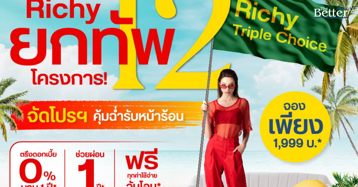 RICHY มุ่งแนวทางธุรกิจควบคู่รับผิดชอบสังคม/สิ่งแวดล้อม อย่างต่อเนื่องและยั่งยืน จัดโปรโมชั่น ‘Richy Triple Choice’ สร้างรอยยิ้มให้กับทุกคนที่กำลังมองหาบ้านและคอนโดพร้อมอยู่