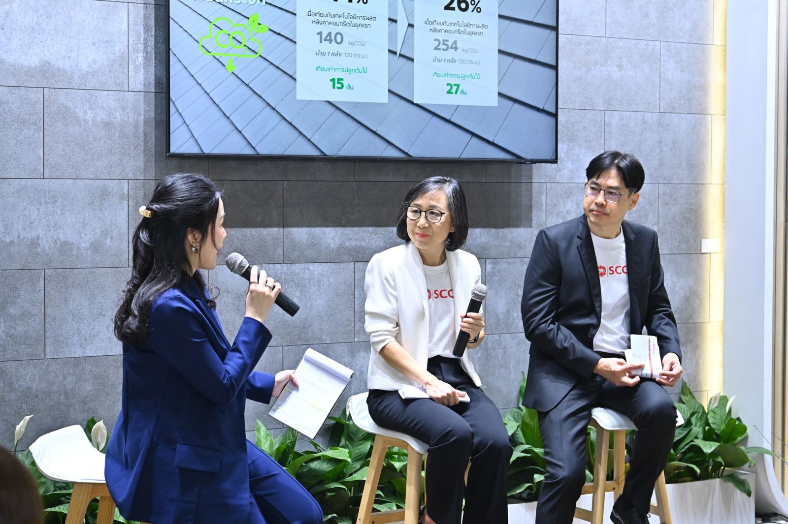 โดยในปัจจุบันหลังคาคอนกรีต เอสซีจี สามารถลดการปล่อยคาร์บอนลงได้ถึง 140 Kg.CO2 หรือ 14% เทียบเท่ากับการปลูกต้นไม้ จำนวน 15 ต้น ต่อการสร้างบ้านหนึ่งหลังที่ใช้หลังคาคอนกรีต เอสซีจี 120 ตารางเมตร และในอีก 5 ปี ข้างหน้า เอสซีจีเดินหน้าพัฒนาสินค้าและบริการตลอดทั้งกระบวนการ เพื่อลดการปล่อยคาร์บอน เพิ่มขึ้นเป็น 254 Kg.CO2 หรือ 26% เทียบเท่ากับการปลูกต้นไม้ จำนวน 27 ต้น เมื่อเทียบกับเทคโนโลยีการผลิตหลังคาคอนกรีตในยุคแรก