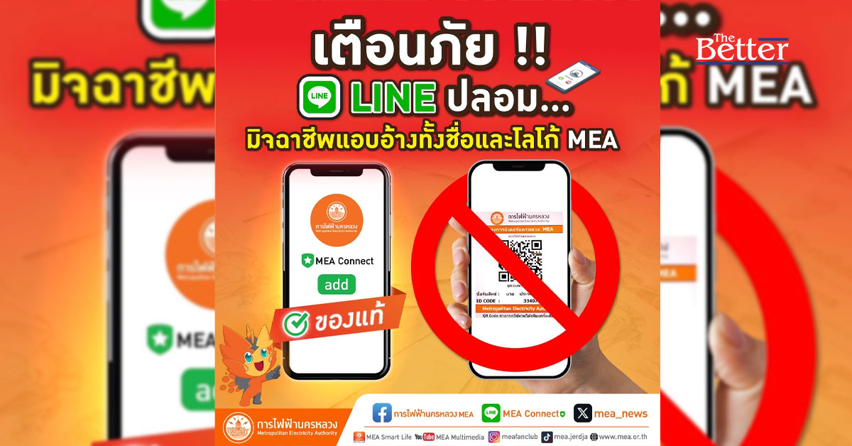 เตือนภัย !! LINE ปลอม…มิจฉาชีพแอบอ้างทั้งชื่อและโลโก้ MEA หลอกให้กดลิงก์และขอข้อมูลผ่านทาง Line หากประชาชนหลงเชื่อ กดลิงก์และให้ข้อมูลจะมีความเสี่ยงทำให้เสียทรัพย์ได้