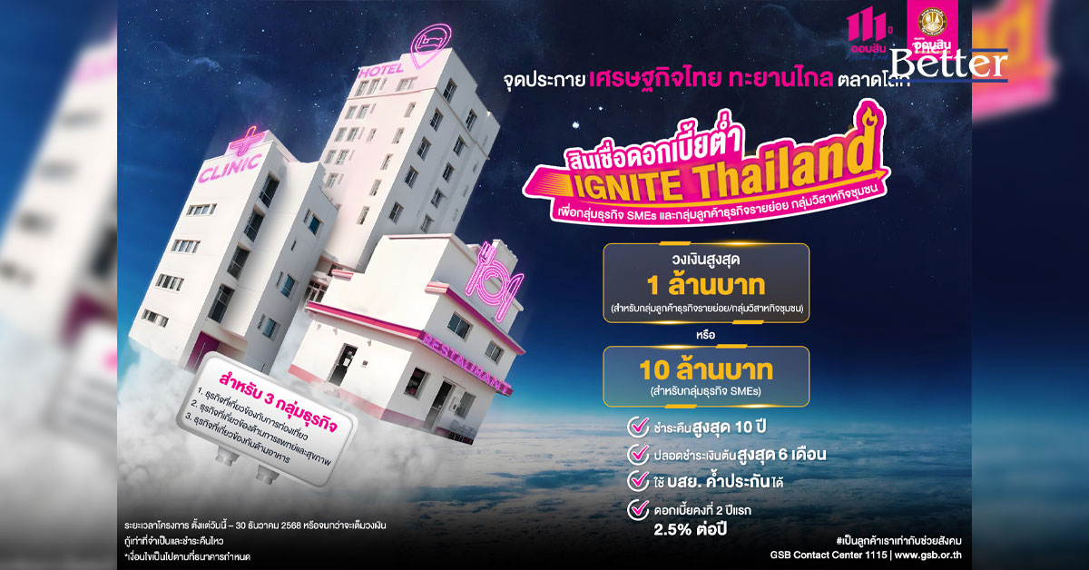 ออมสินออก สินเชื่อดอกเบี้ยต่ำ IGNITE THAILAND ให้วงเงินสูง พร้อมเงื่อนไขพิเศษ ตั้งแต่วันนี้ – 30 ธ.ค. 68