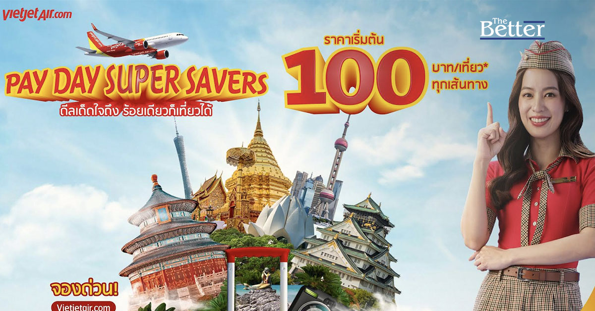 เวียตเจ็ทไทยแลนด์มอบประสบการณ์การเดินทางเหนือระดับในราคาสุดคุ้ม ออกโปรโมชั่น “ดีลเด็ดใจถึง ร้อยเดียวก็เที่ยวได้ (Pay Day Super Savers)” เสนอบัตรโดยสารราคาพิเศษ เริ่มต้นเพียง 100 บาท
