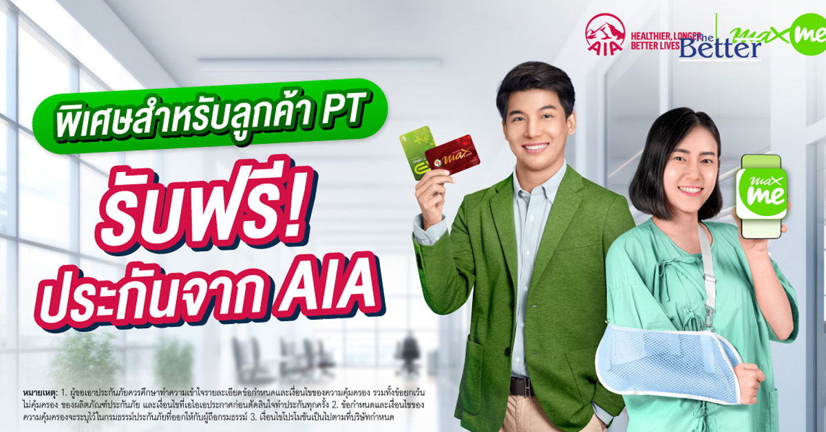 แมกซ์ โซลูชัน จับมือ เอไอเอ ประเทศไทย มอบประกันอุบัติเหตุฟรี คุ้มครองสูงสุด 100,000 บาท พร้อมจัดเต็มสิทธิประโยชน์มากมาย สำหรับสมาชิกแอปพลิเคชัน Max Me และ PT Max Card