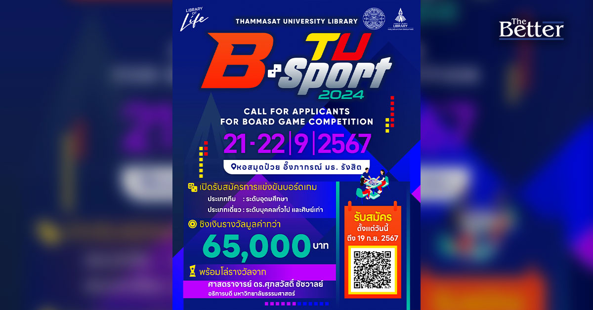 มหาวิทยาลัยธรรมศาสตร์ โดยหอสมุดแห่งมหาวิทยาลัยธรรมศาสตร์ ร่วมกับ ชุมนุมบอร์ดเกม จัดการแข่งขันบอร์ดเกมครั้งใหญ่ TU B-Sport 2024 ระหว่างวันที่ 21-22 ก.ย.67 นี้ เชิญชวนนักศึกษา/ประชาชนจากทั่วประเทศร่วมชิงเงินรางวัลรวมมูลค่ากว่า 65,000 บาท พร้อมเปิด “หอสมุดป๋วย อึ๊งภากรณ์ มธ. ศูนย์รังสิต” เป็นสนามแข่ง หวังกระตุ้นการเรียนรู้และความคิดสร้างสรรค์ไร้ขีดจำกัด ยกระดับสู่ “Library of Life” เต็มสูบ