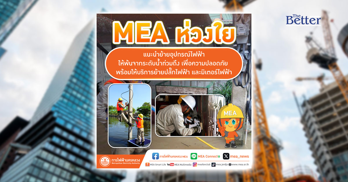 MEA ห่วงใย แนะนำย้ายอุปกรณ์ไฟฟ้าให้พ้นจากระดับน้ำท่วมถึง เพื่อความปลอดภัย พร้อมให้บริการย้ายปลั๊กไฟฟ้า และมิเตอร์ไฟฟ้า